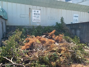 家庭から出た木材、剪定枝、刈草・葉、竹、木製家具をリサイクルセンターで資源として無料で回収します。回収した木材は、リサイクル業者に運搬し、破砕され、バイオマス燃料や木質ボードの原料などに生まれ変わります。詳しくはこちら